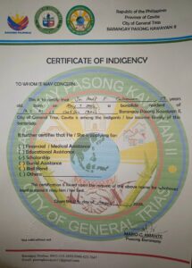 Upload a PDF File of the latest Bureau of Internal Revenue Income Tax Return (ITR) of your parents/guardians or yours, if you’re already working. If you or your parent/guardians do not have an ITR, you may submit a Certificate of Indigence from your Barangay or an Affidavit of Non-filing of Income Tax Return.: Certicate-of-indigency
