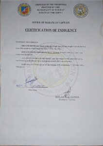 Upload a PDF File of the latest Bureau of Internal Revenue Income Tax Return (ITR) of your parents/guardians or yours, if you’re already working. If you or your parent/guardians do not have an ITR, you may submit a Certificate of Indigence from your Barangay or an Affidavit of Non-filing of Income Tax Return.: CERTIFICATE-OF-INDIGENCY