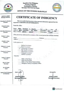 Upload a PDF File of the latest Bureau of Internal Revenue Income Tax Return (ITR) of your parents/guardians or yours, if you’re already working. If you or your parent/guardians do not have an ITR, you may submit a Certificate of Indigence from your Barangay or an Affidavit of Non-filing of Income Tax Return.: CERTIFICATE-OF-INDIGENCY2