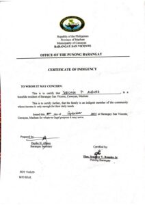 Upload a PDF File of the latest Bureau of Internal Revenue Income Tax Return (ITR) of your parents/guardians or yours, if you’re already working. If you or your parent/guardians do not have an ITR, you may submit a Certificate of Indigence from your Barangay or an Affidavit of Non-filing of Income Tax Return.: Document