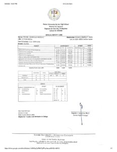 Upload a PDF File Containing Your Grade Records as Described in the Requirements Above. Your most recent report cards or grades must have a cumulative Grade Point Average (GPA) on it.: FRANJE_G12-2nd-Sem