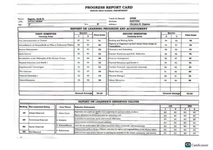 Upload a PDF File Containing Your Grade Records as Described in the Requirements Above. Your most recent report cards or grades must have a cumulative Grade Point Average (GPA) on it.: G11-Card