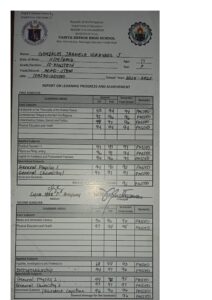 Upload a PDF File Containing Your Grade Records as Described in the Requirements Above. Your most recent report cards or grades must have a cumulative Grade Point Average (GPA) on it.: Gonzales-Jhamela-Sckayrel-J.-Report-Card