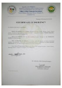 Upload a PDF File of the latest Bureau of Internal Revenue Income Tax Return (ITR) of your parents/guardians or yours, if you’re already working. If you or your parent/guardians do not have an ITR, you may submit a Certificate of Indigence from your Barangay or an Affidavit of Non-filing of Income Tax Return.: inbound3286140915778540749