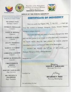 Upload a PDF File of the latest Bureau of Internal Revenue Income Tax Return (ITR) of your parents/guardians or yours, if you’re already working. If you or your parent/guardians do not have an ITR, you may submit a Certificate of Indigence from your Barangay or an Affidavit of Non-filing of Income Tax Return.: indigency