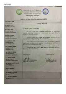 Upload a PDF File of the latest Bureau of Internal Revenue Income Tax Return (ITR) of your parents/guardians or yours, if you’re already working. If you or your parent/guardians do not have an ITR, you may submit a Certificate of Indigence from your Barangay or an Affidavit of Non-filing of Income Tax Return.: INDIGENCY_NOVELLA-FELIZARDO