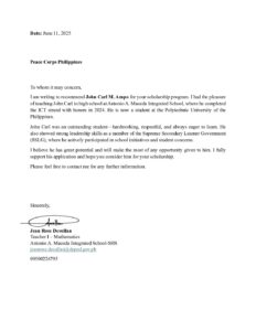 Max file size is 5MB Upload a PDF File of your second recommendation form.: John-Carl-Ampo-Reccomendation-Letter
