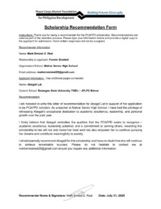 Max file size is 5MB Upload a PDF File of your second recommendation form.: Lat-Abegail-PCAFDP-Recommendation-Form-2