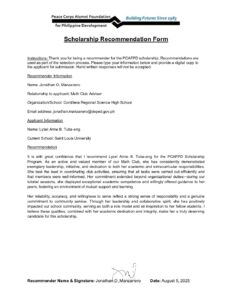 Max file size is 5MB Upload a PDF File of your second recommendation form.: PCAFPD-Recommendation-Letter-2-Tuba-ang