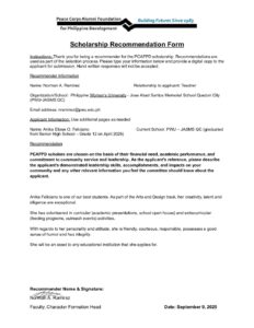 Max file size is 5MB Upload a PDF File of your second recommendation form.: PCAFPD-Scholarship-Recommendation-Form.docx