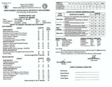 Upload a PDF File Containing Your Grade Records as Described in the Requirements Above. Your most recent report cards or grades must have a cumulative Grade Point Average (GPA) on it.: PENAVERDE-J.-M.-L.-Grade-12-Report-Card