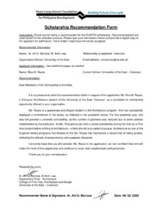 Max file size is 5MB Upload a PDF File of your second recommendation form.: Reyes-PCAFPD-Recommendation-Form-02-Instructor