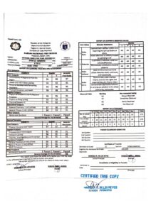 Upload a PDF File Containing Your Grade Records as Described in the Requirements Above. Your most recent report cards or grades must have a cumulative Grade Point Average (GPA) on it.: Sinahan-Narcilyne-Pearl-Report-Card