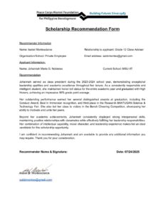 Max file size is 5MB Upload a PDF File of your second recommendation form.: Teacher-Recommendation-Letter-NOBIERES.docx